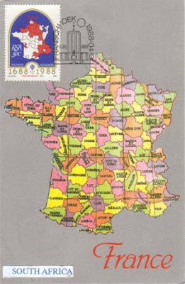 New country for my collection came as official. This maxicard devoted to 300 years of first French Huguenots settlement in South Africa. There are many families, today mostly Afrikaans-speaking, whose surnames bear witness to their French Huguenot ancestry. Mommylinda has French surname too.